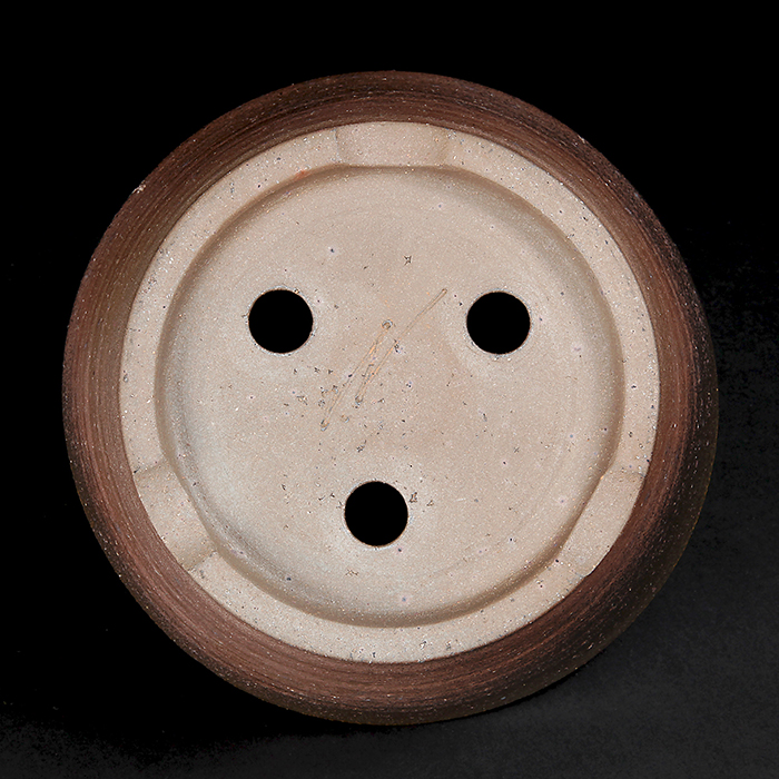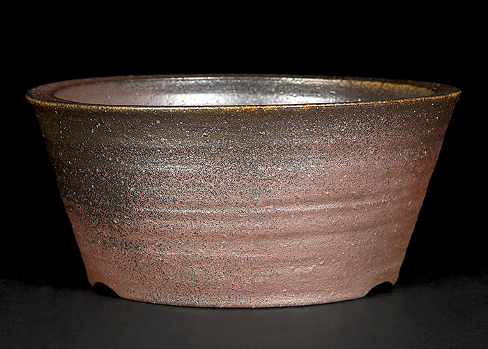 「盆栽は芸術」という認識を持ち「芸術品には芸術的な陶磁器を使うほうが面白い」との考えから伝統的盆器の枠に収まらない型・意匠の作品を世に送り出す「凡才」。その作品の大半は南蛮鉢です。南蛮盆器は決まり事が少なく自由度が高いことに着目して独自の胎土とセンスで本南蛮を凌駕する味わい深い作品や現代アートに通ずるモダンな作品を生み出しています。