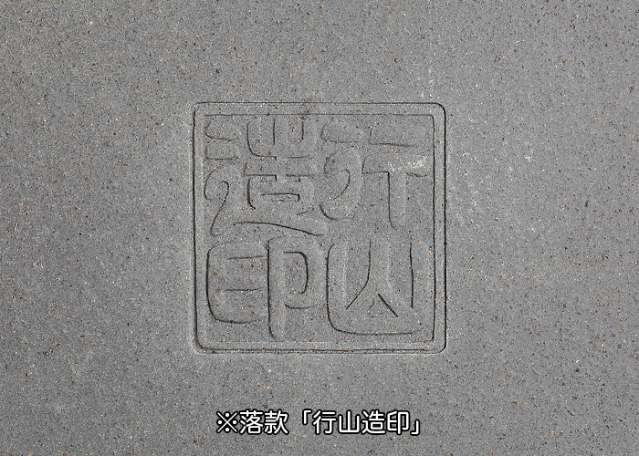 型物の行山のユーズド鉢。 「常滑烏泥」と称される土目で、古い時代に焼成された作品です。時代の乗りにくい常滑烏泥ですが素晴らしい時代感を備えた逸品です。内縁に薄いホツレはありますが使い味を考慮すれば保存状態は良好と言えます。落款:行山造印