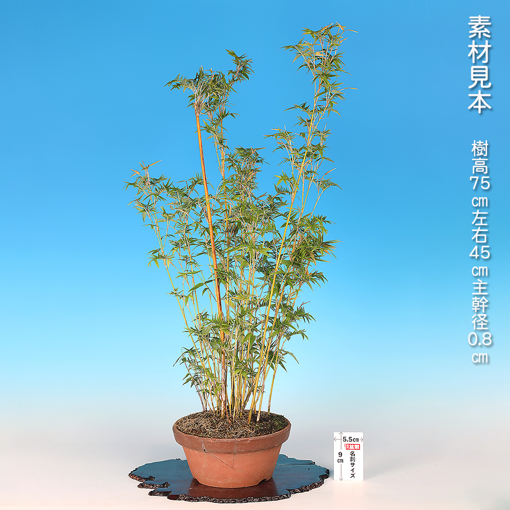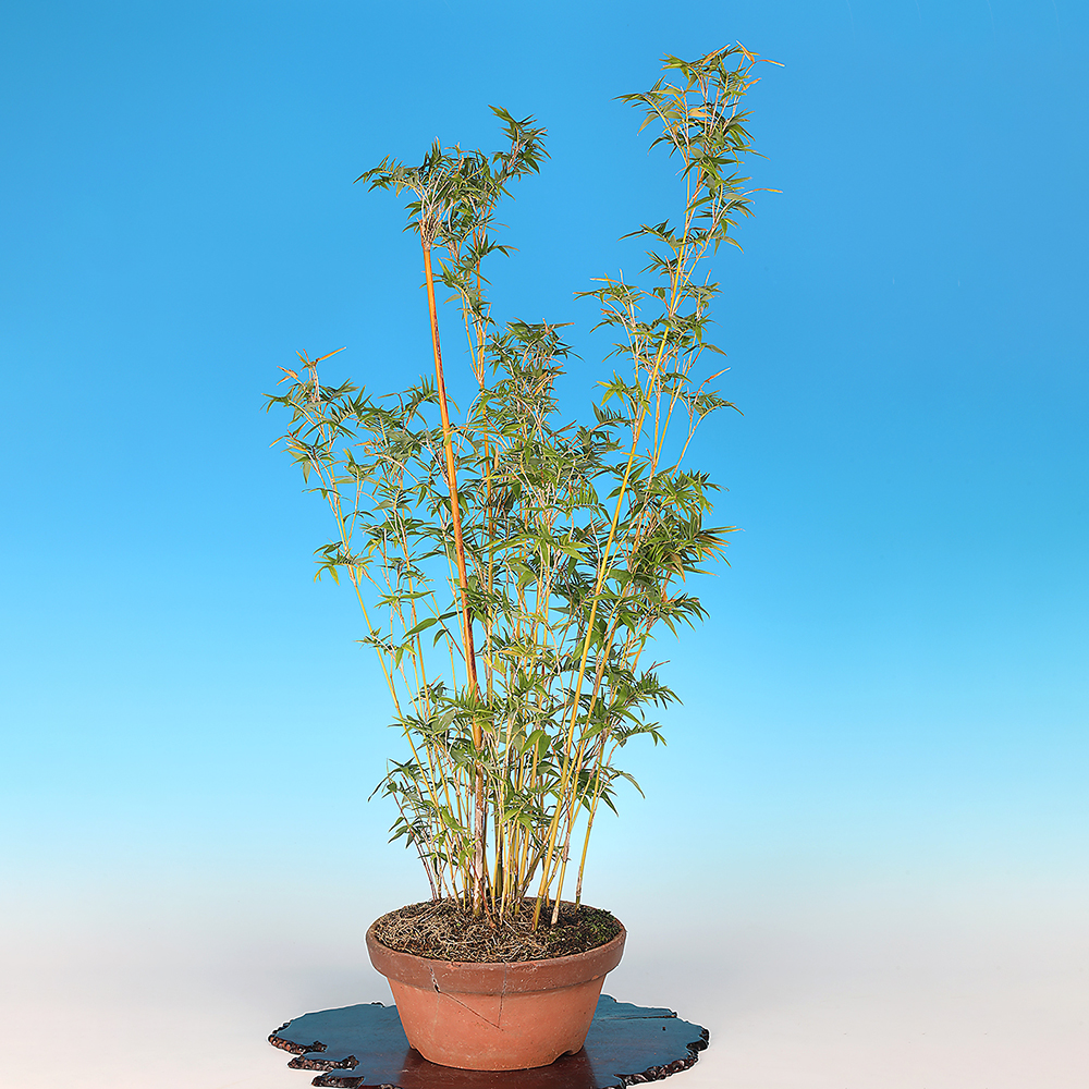 葉が小さく株立ち状になることからよく盆栽に仕立てられ、「開運竹」の名で縁起物植物としても親しまれます。本数に違いあり。