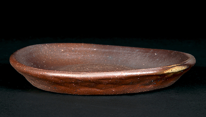 皿型の南蛮型でやや捻りを入れることで柔らかみの出しています。ワンポイントで白泥をあしらっており、洒脱さも加味された一枚。寄せ植えなどに最適です。落款:黎鳳造