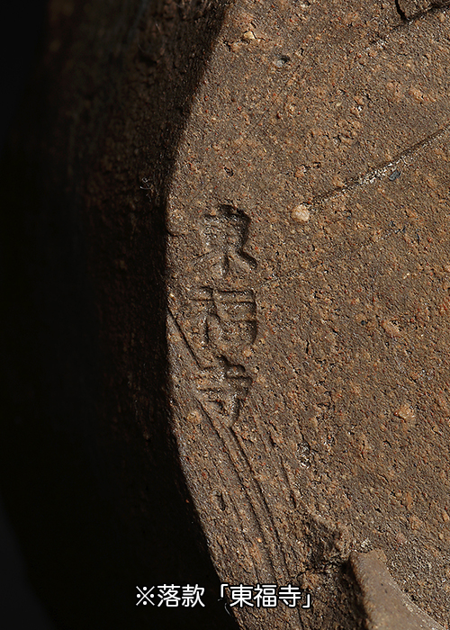 素朴な土味が魅力の東福寺手びねり鉢。窯変によって表裏で色彩が異なるが、それもまた東福寺らしい味わい。時代乗りも申し分無し。木箱付。落款:東福寺