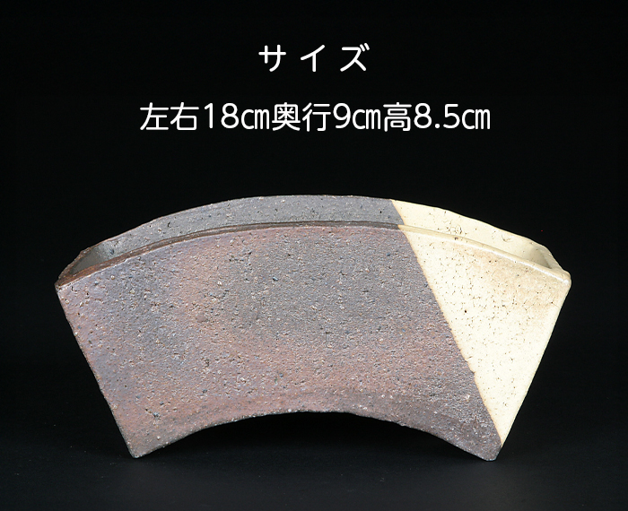 扇型の洒落たデザインの鉢です。白釉の意匠が一層デザイン性を高めています。寄せ植えに最適でコンテナ的な植え付けができます。花木や山野草など幅広く使えます。落款:片