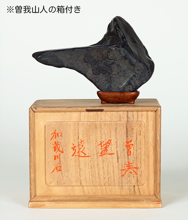 ここに紹介した水石は、著名愛石家として名高い「曽我山人(そがさんじん)」本山幸男氏旧蔵の逸品である。大阪府在住の本山氏は、丹波紫雲石を始めとして、数多くの名石を所蔵した人物として知られ、水石の見識だけではなく煎茶や文房、詩歌などに精通し、最後の文人と称された「水府散人」薄井正志氏と双璧を為すとも言われる水石界の重鎮である。石質や産地などに強いこだわりを持ち、その卓越した審美眼で見出された水石の数々は、そのほとんどが未公開に近い形で秘蔵されており、まさしく知る人ぞ知る「幻の名石群」。前回ご紹介した時にも大反響を得た水石愛好家垂涎の逸品を、特別価格にてご奉仕。この機会にぜひ!