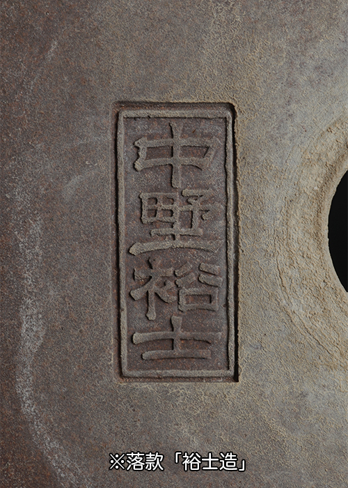 丁寧に使い込まれており、土目に表れた時代感が松柏の古木と抜群の相性を誇る。切立の洗練されたフォルムと上下帯の格調高い細工が秀逸。落款:中野裕士