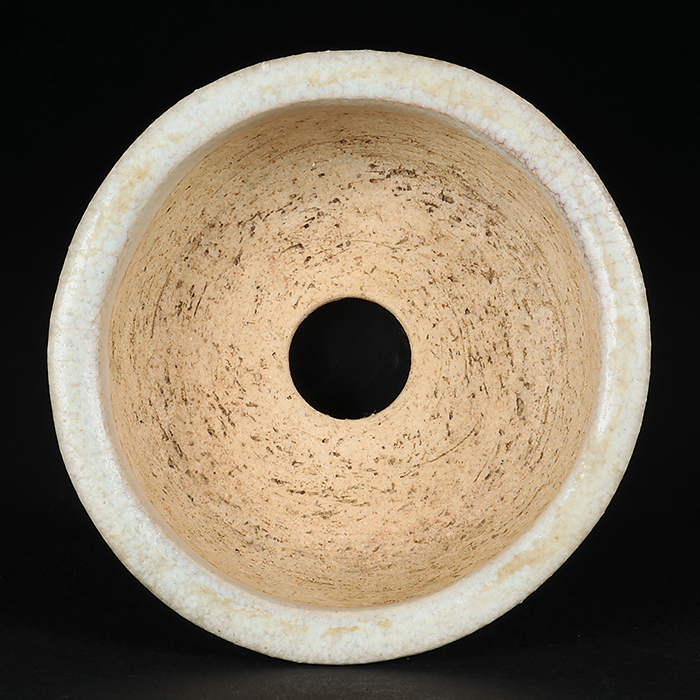 東福寺の丸鉢には珍しく、美しく整った形状をしている作品。時代乗りも素晴らしく、型・寸法ともに小品盆栽に最適の逸品。木箱付。落款:東福寺