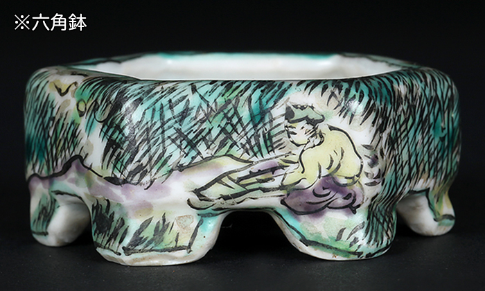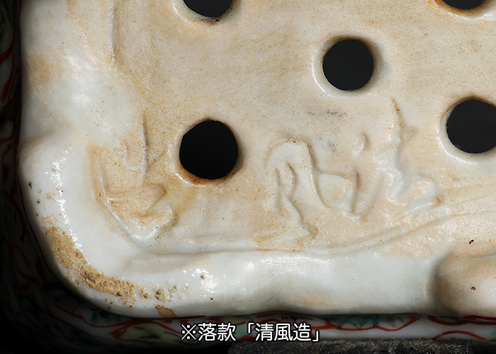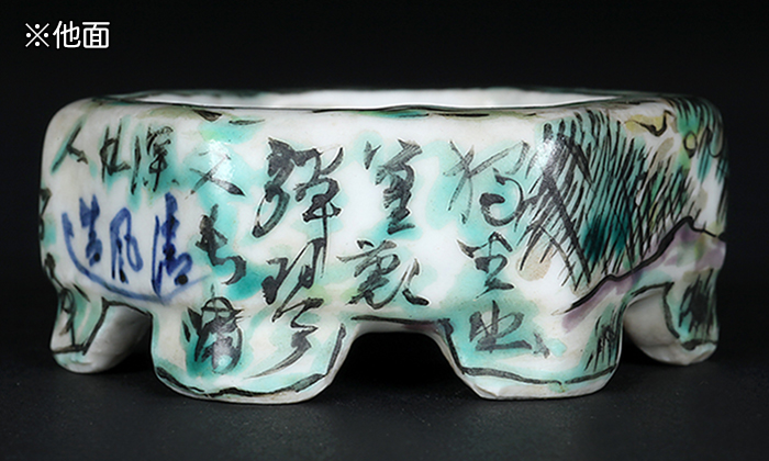 五代(1921~1991)は彩画磁・彫画磁・染付・白磁などをつくって独自の作風を確立した。清風家再興を意図して苦闘する中、月之輪涌泉との合作盆器で活路を開いたエピソードはよく知られている。清風与平の盆器といえば大半は五代の作、もしくは涌泉工房のボディに五代が絵付した合作である。
