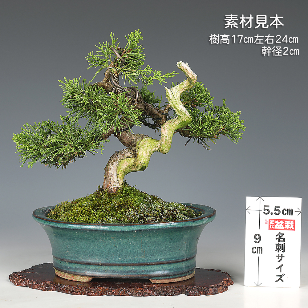 若木の段階から計画的に作られてきた真柏の優良素材。葉性の素晴らしさは言うまでもなく、幹への模様付け・シャリ入れも的確になされており、あと1~2年で飾れるほどの段階です。