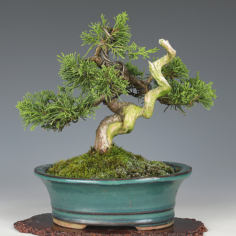 ジン・シャリの芸をはじめとする多彩かつ奔放な樹形表現で、他の樹種とは一線を画す存在です。しかも数ある盆栽樹種の中でも、最も強健で育てやすい部類に入ります。自然の厳しさと樹木のみずみずしい生命力を体現する魅力的な樹種です。