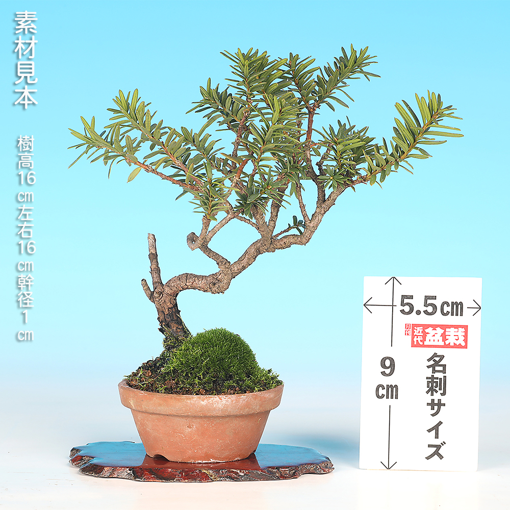 立ち上がり近くから大きな模様が入り、楽しみ多い一位の素材。一位の小品・ミニ盆栽は少なく、貴重な素材と言えます。幹模様は素材ごとにバラツキがあるので、どのように個性を活かして仕立てるかも腕の見せ所です。一位らしい個性溢れる樹姿に仕上げて下さい。