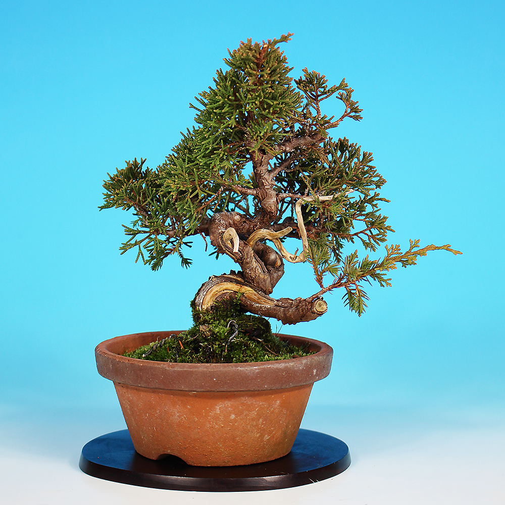 ジン・シャリの芸をはじめとする多彩かつ奔放な樹形表現で、他の樹種とは一線を画す存在です。しかも数ある盆栽樹種の中でも、最も強健で育てやすい部類に入ります。自然の厳しさと樹木のみずみずしい生命力を体現する魅力的な樹種です。