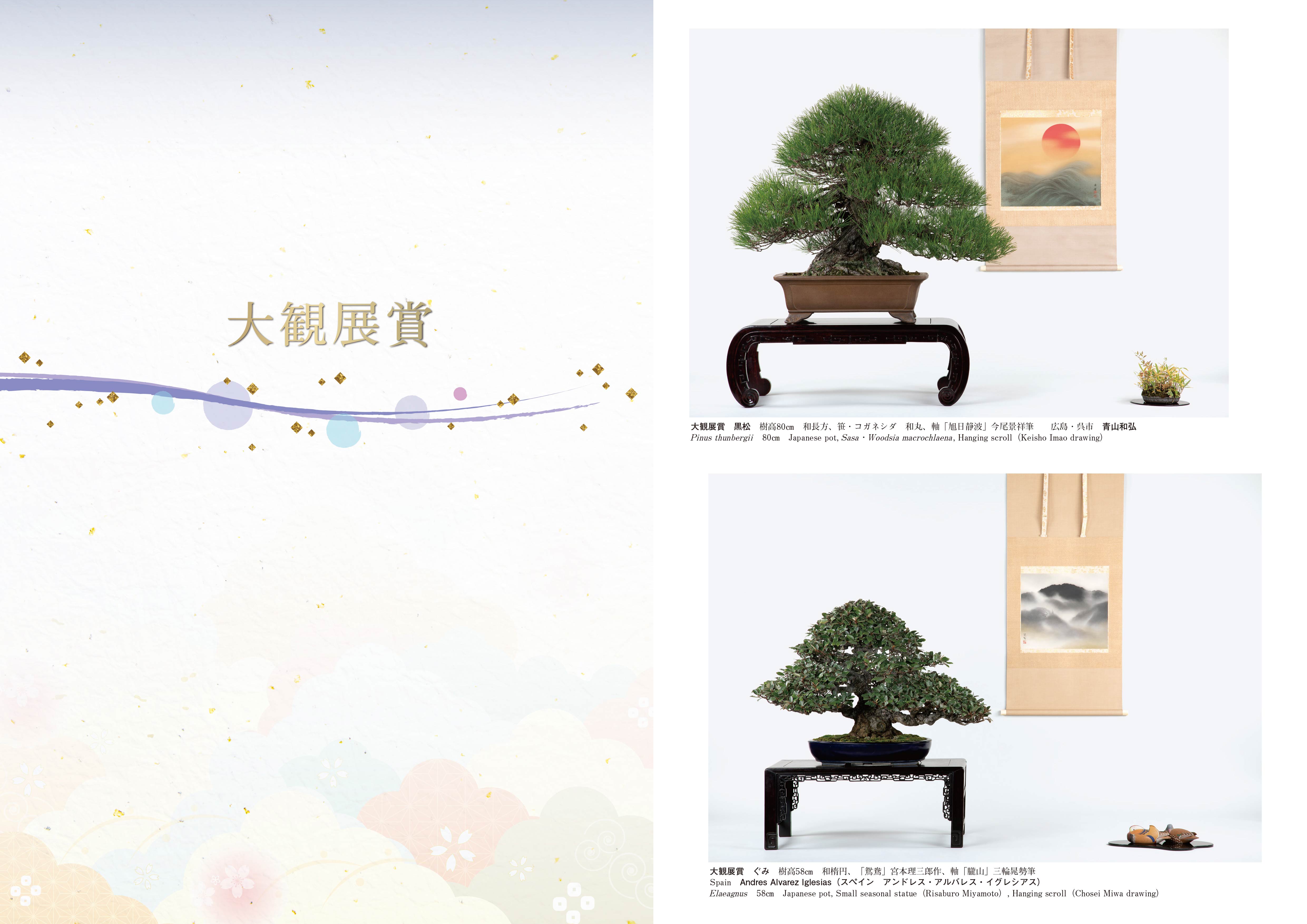 晩秋の京都を舞台に開催される日本盆栽大観展。展示会の規模・出品される樹のレベルは国内屈指の高さで「東の国風展、西の大観展」と称されるほど。特別出品席8席や各受賞席、個展席を含めた全出品作品135席を収録。