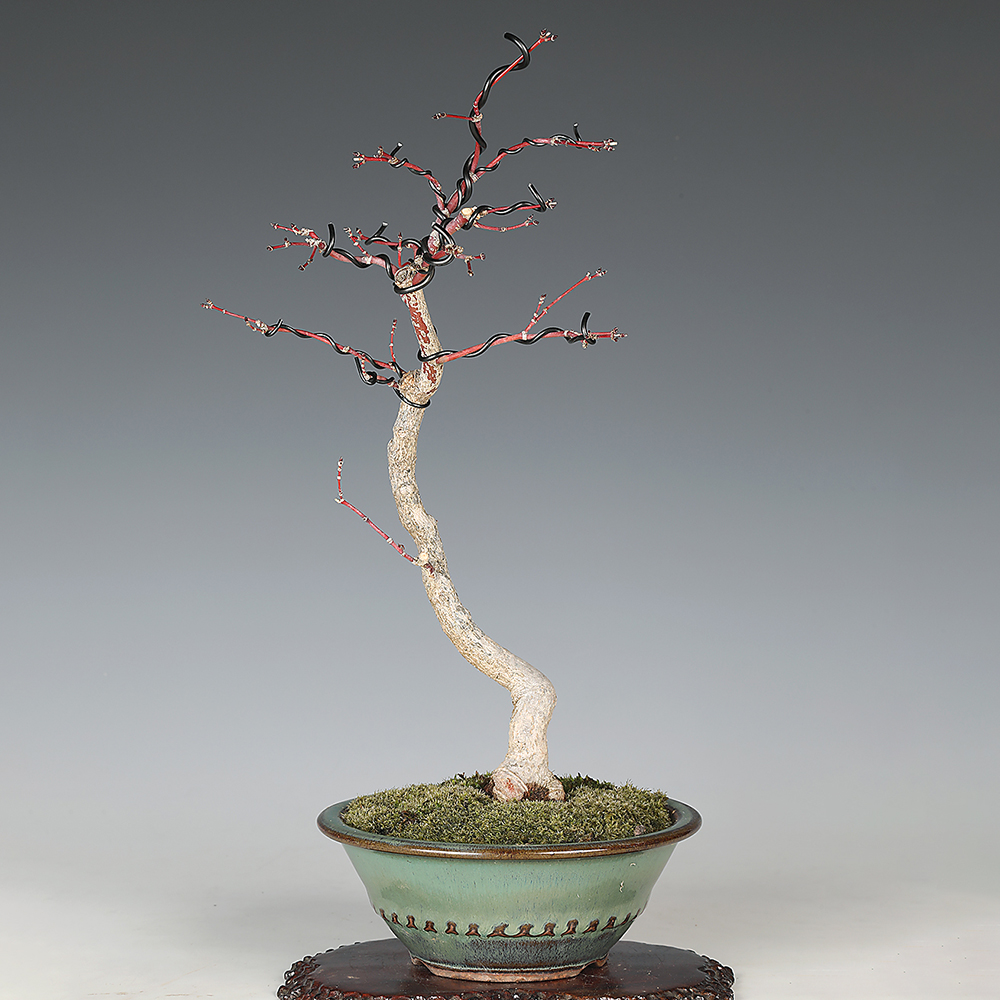 文人風の樹形で自然な幹の優しい模様が魅力の素材。幹には時代も見せています。芽出しの美しさ、夏の清涼感、秋の紅葉と四季を楽しんで下さい。