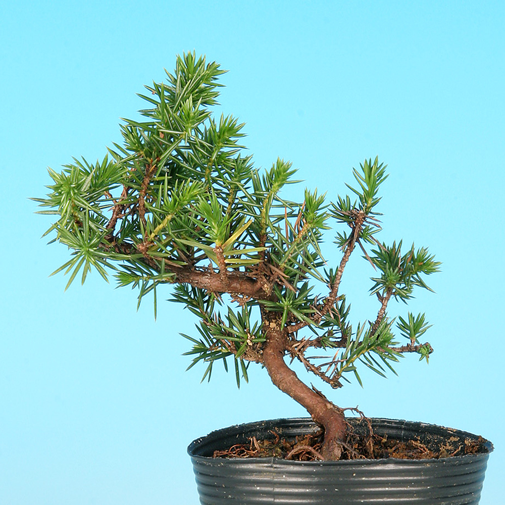 荒々しいジン・シャリ芸が見所の「杜松」の苗木素材。その杜松の八ツ房品種です。這性に近い性質を持っており、芽吹きが良く切り込みにもよく耐えます。小品盆栽向きな品種です。