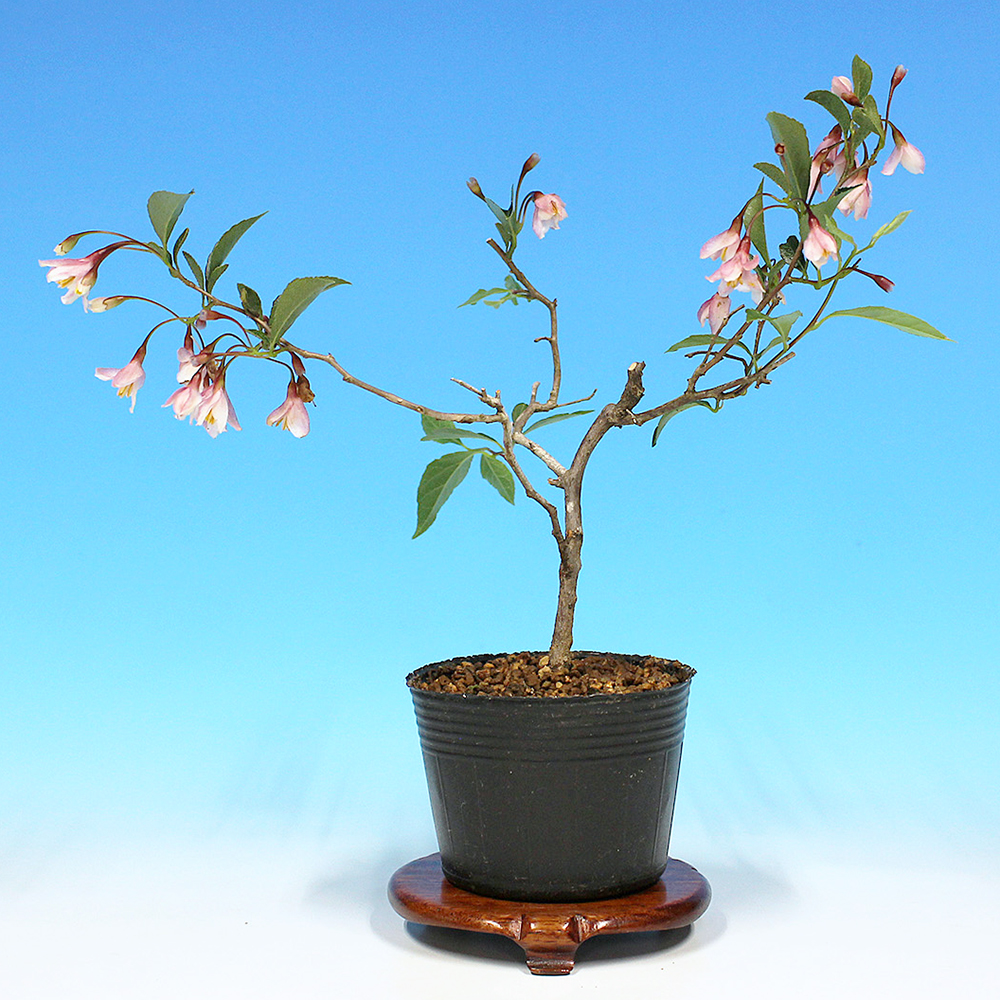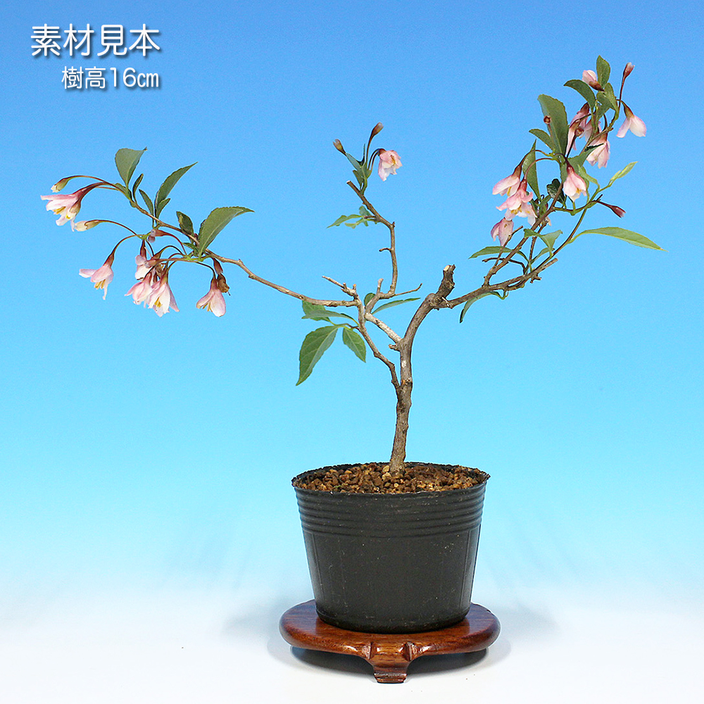 エゴノキ科の落葉小高木。初夏に咲く可憐な白もしくはピンクの花。夏に青白色に熟すドングリに似た果実は涼感を味わえます。丈夫で育てやすく、芽吹きがよく小枝がよくできます。また自然交配で実が付くので初心者にも楽しめる樹種です。
