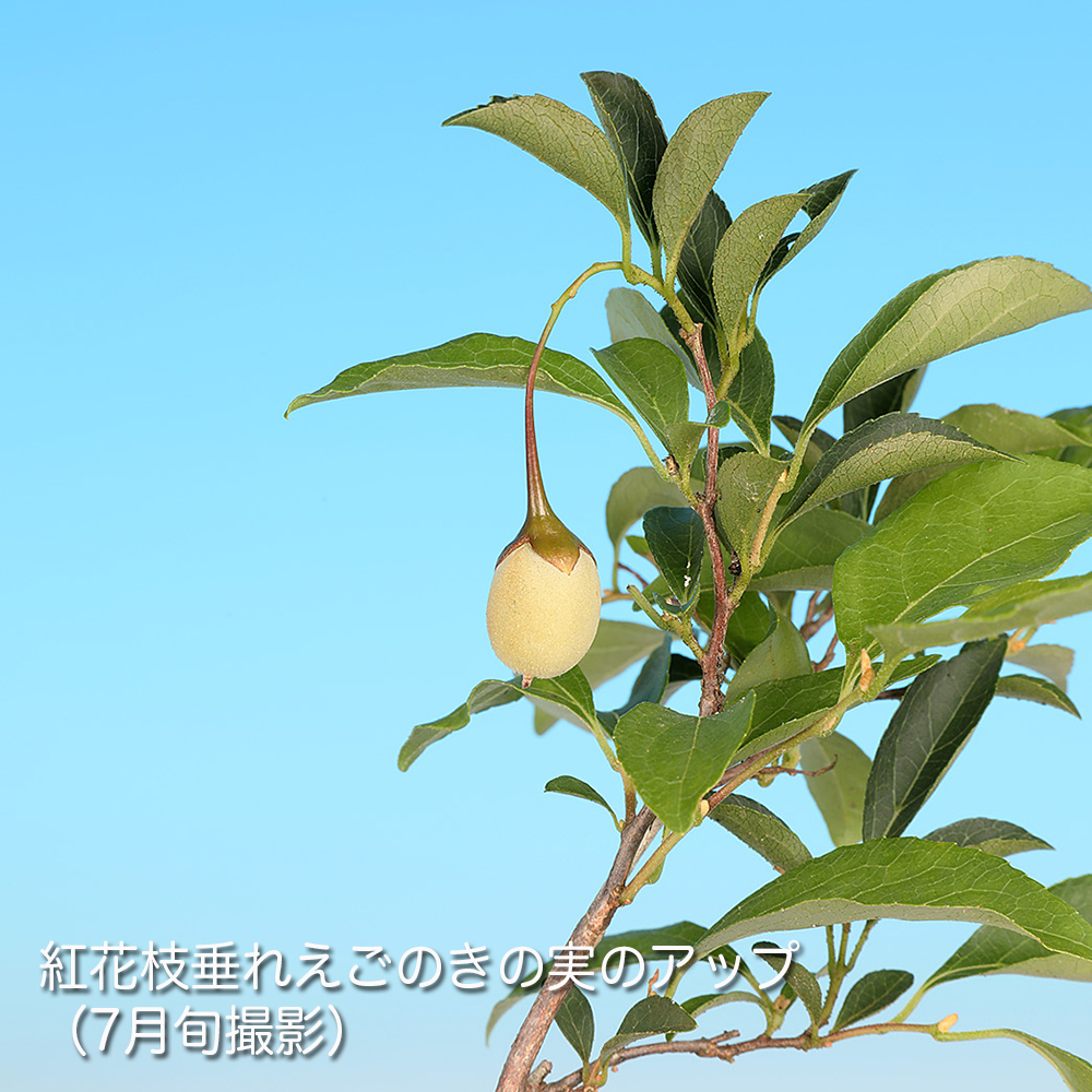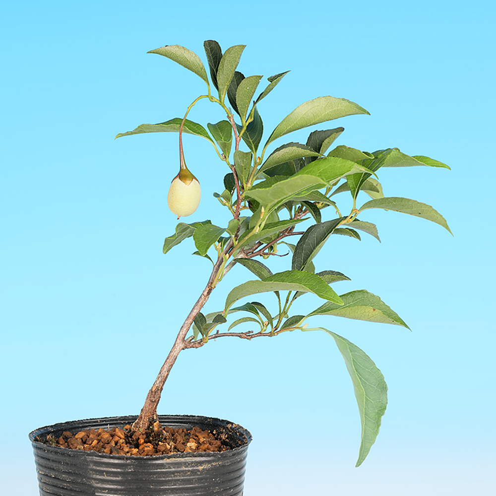エゴノキ科の落葉小高木。初夏に咲く可憐な白もしくはピンクの花。夏に青白色に熟すドングリに似た果実は涼感を味わえます。丈夫で育てやすく、芽吹きがよく小枝がよくできます。また自然交配で実が付くので初心者にも楽しめる樹種です。