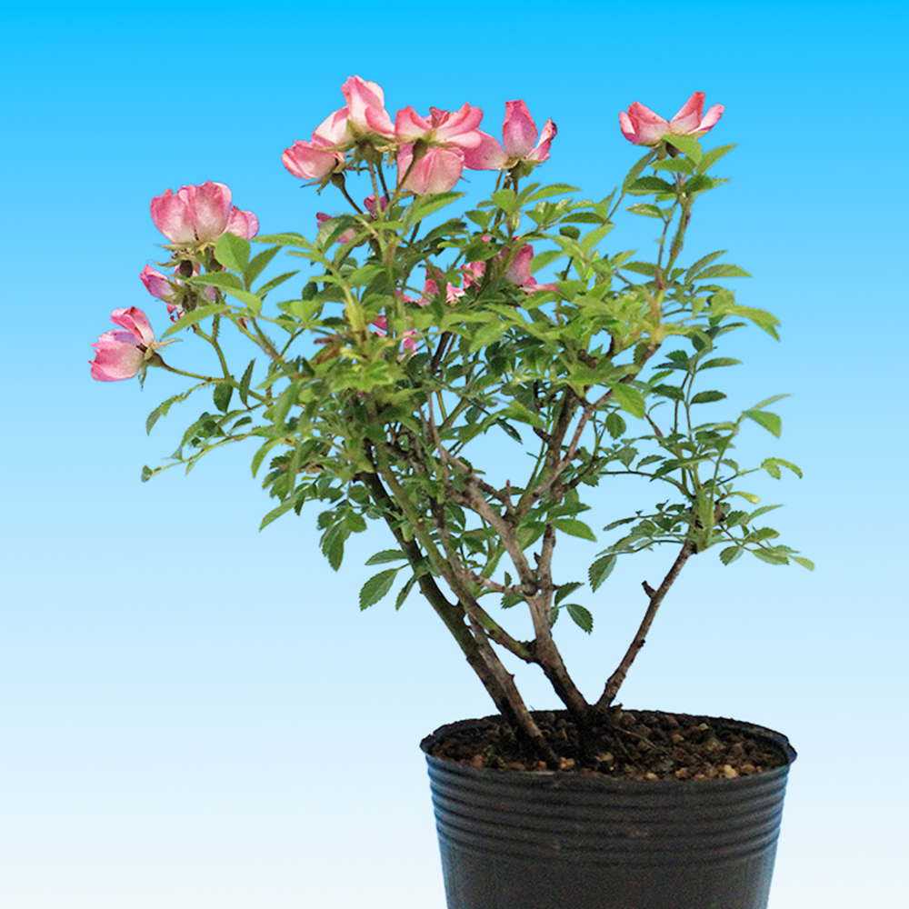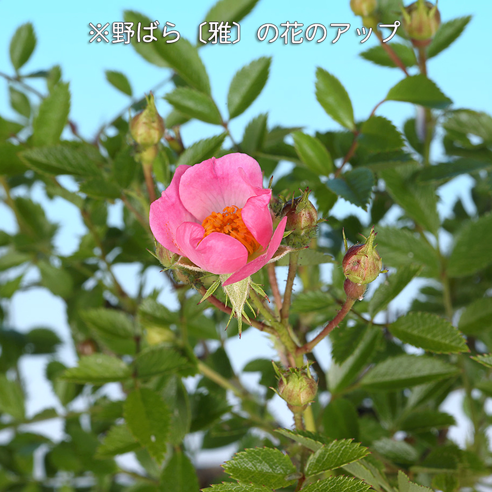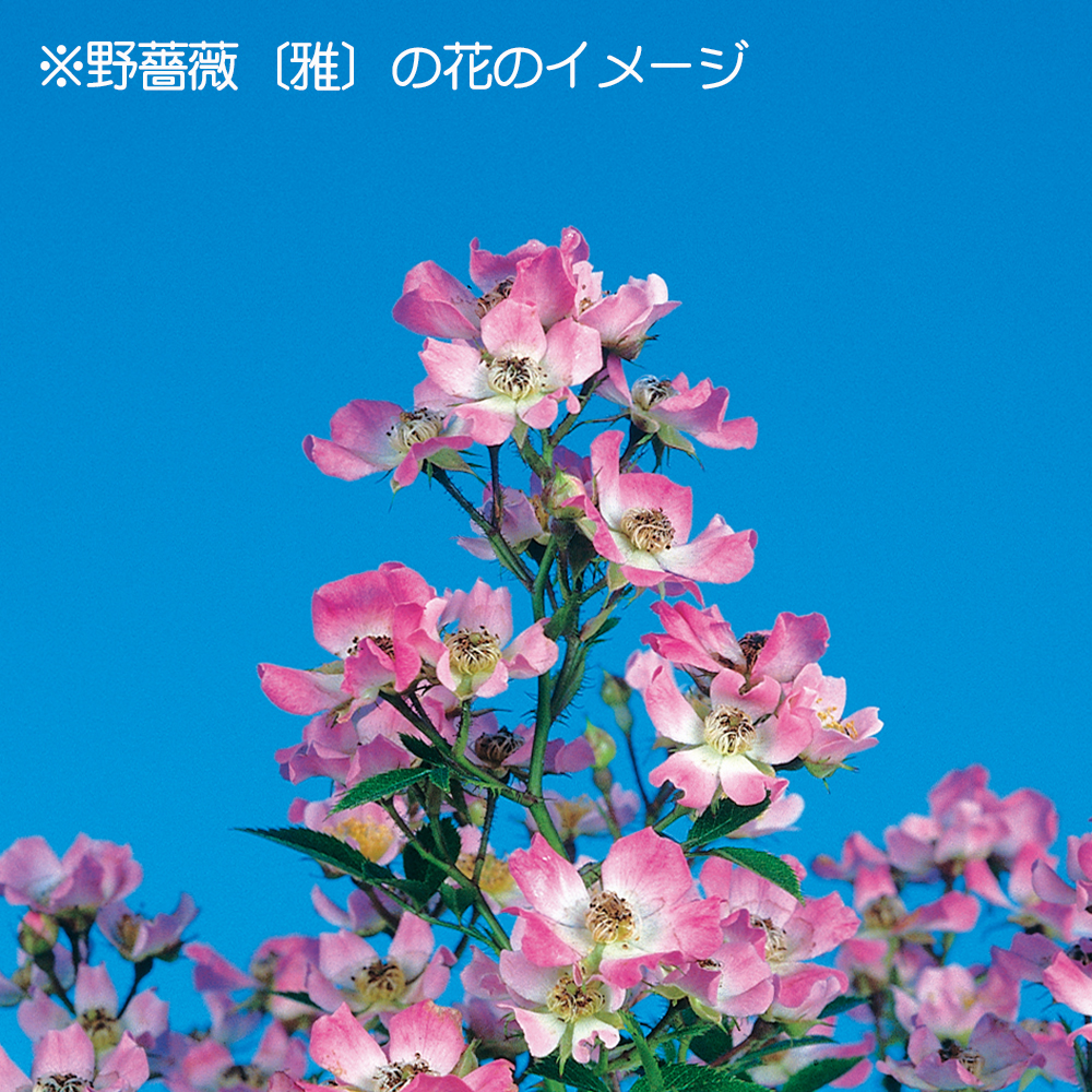 園芸界で高い人気を保ち続ける樹種「野ばら」。淡桃色で底白の小さく可憐な花を咲かせる人気品種「雅」の苗木素材。小枝も細かく分岐するので、枝づくりは比較的容易です。