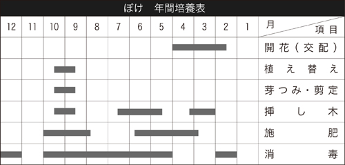 若木のうちは春から伸びる新梢を芽押さえして枝骨の基礎を作り、休眠期は樹形の輪郭線を描きつつ切り込みを繰り返します。