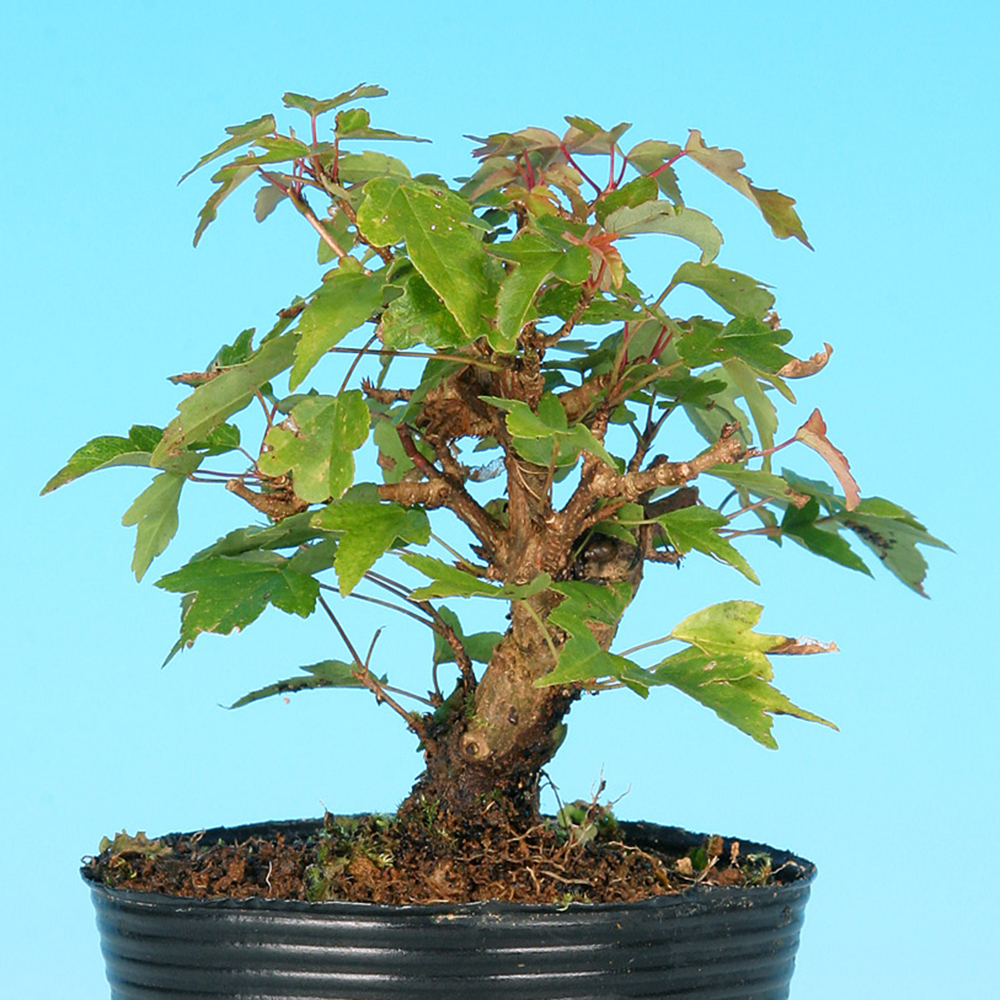 葉が小さく枝が混みやすい上に軸が太りにくい性質の美濃八ッ房楓。大変作りやすい品種で小品盆栽・ミニ盆栽に仕立てるのに最適な素材です。
