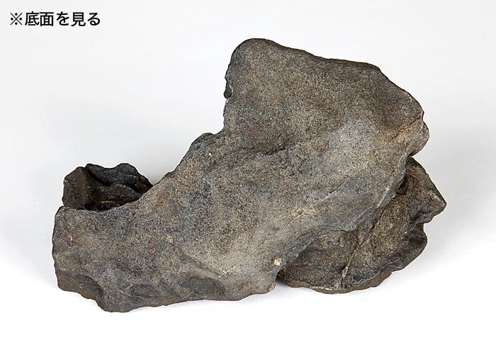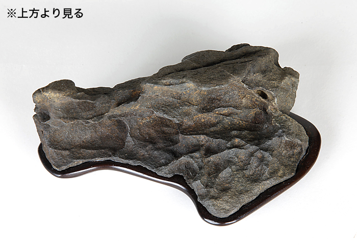 北海道の襟裳岬に近い豊似山脈から産する石で、石質は硬質の砂岩系で佐治川に似た特徴を持っています。形は変化の激しい奇石が多く、川ずれの面白い石が見られます。この石も典型的な豊似石でジャグレの変化や特異な形状は見る者を飽きさせません。寂びた風合いも見事な逸品です。