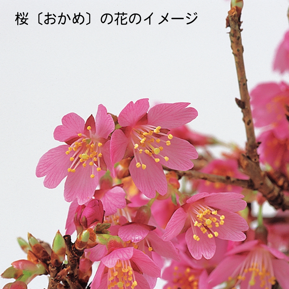 日本の春を代表する花木・桜。盆栽としても春の展示会には欠かせない存在です。「カンヒザクラ」と「マメザクラ(富士桜)」との交配品種で、早咲き、愛らしい濃い紫紅色の小輪で花を下向きに付けるのが特徴。花も小さいので小品盆栽・ミニ盆栽向きです。卓上で手軽にお花見を楽しんで下さい。お部屋のインテリアやガーデニングなどにもオススメ。