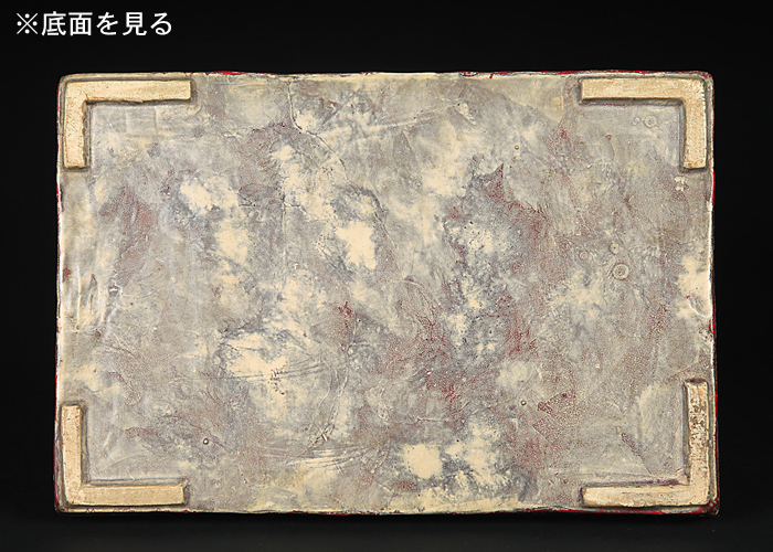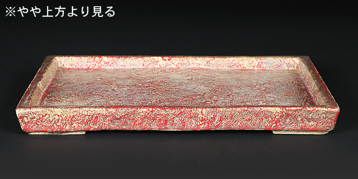 安土桃山時代頃より陶磁器の一大産地として栄えた美濃焼の水盤。窯変による発色の変化が美しい文様を描き出しており、水盤そのものが鑑賞の対象となり得る格調を備えている。精緻なフォルムと丁寧な作りが、一流職人の手によるものであることを証明している。木箱付き。
