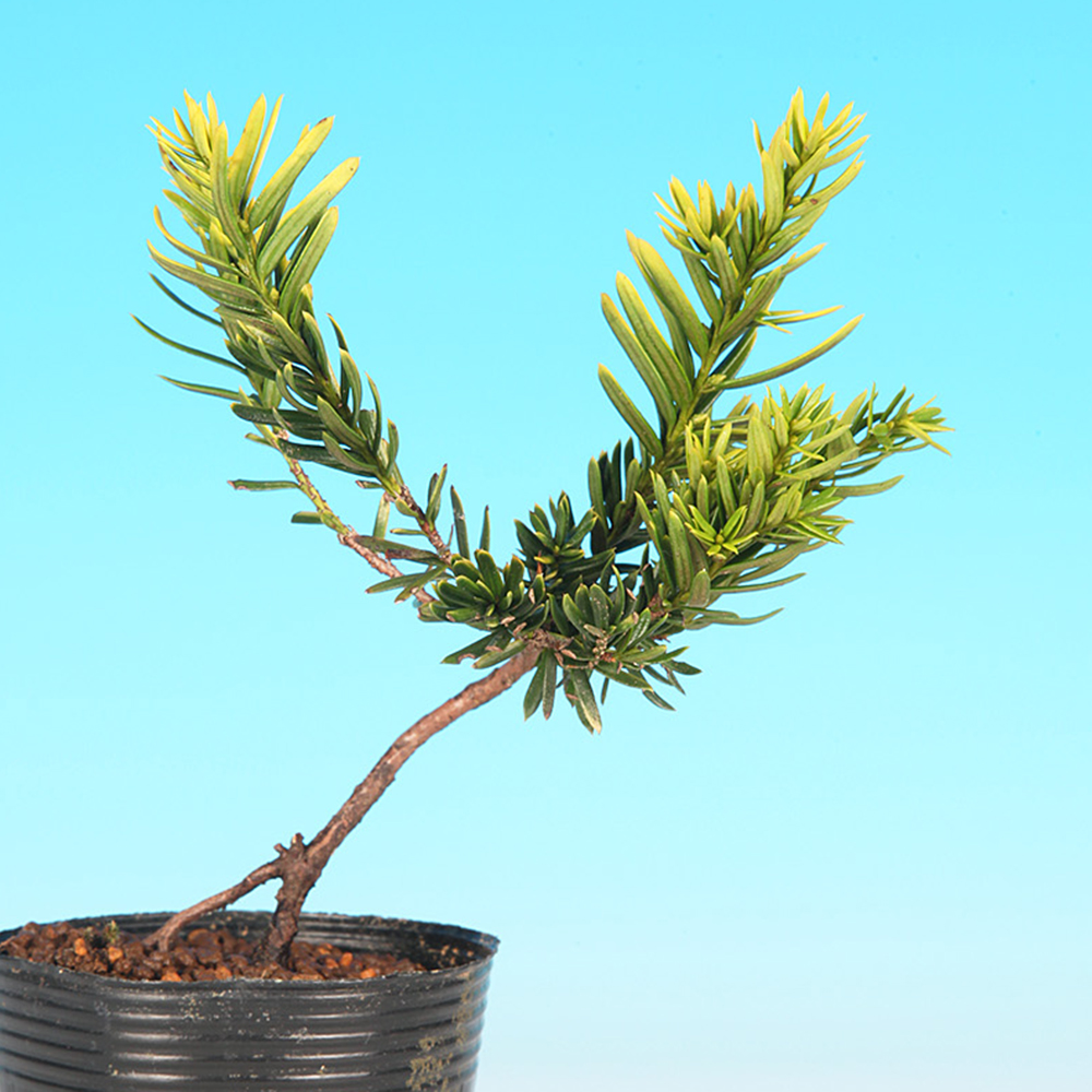 真柏や杜松と同様にジン・シャリ芸が楽しめる樹種の「一位」。黄金に輝く葉色が美しい品種です。樹勢も比較的強く、盆栽初心者の方にもオススメです!